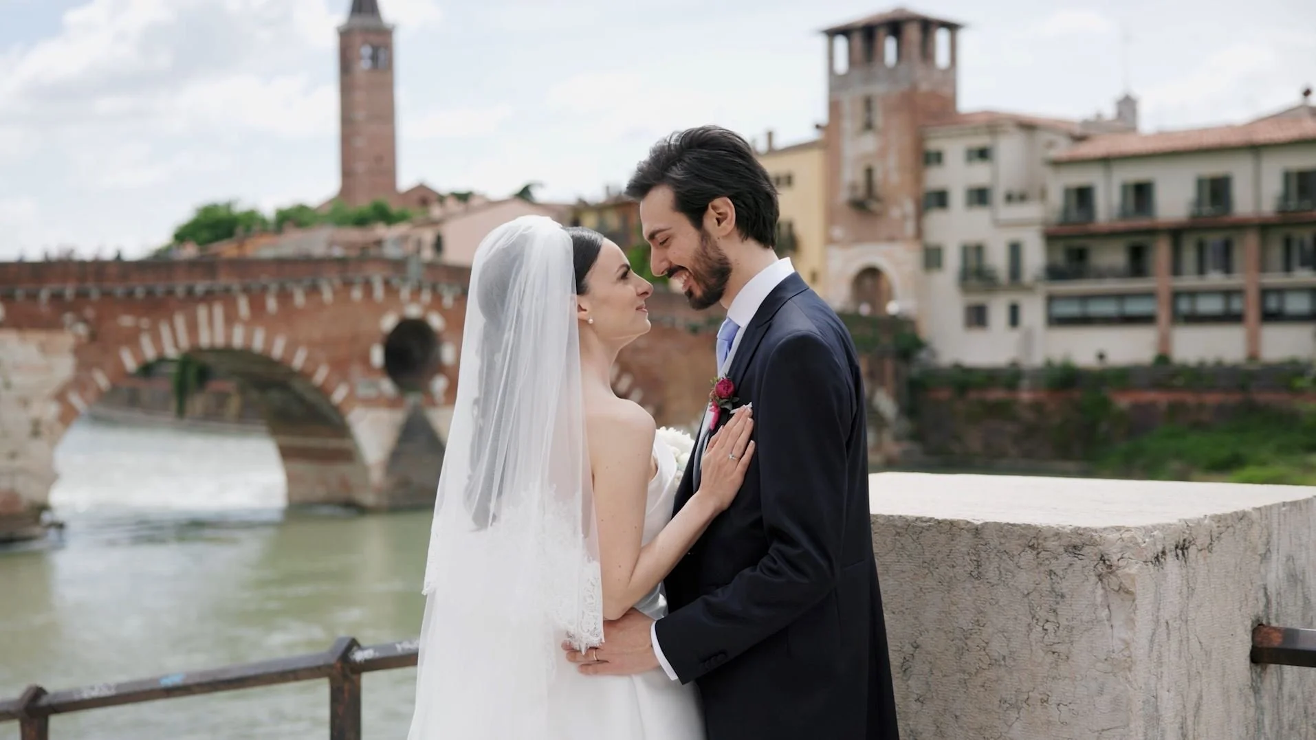 Cerimonia nella storica Chiesa di Santo Stefano a Verona, ricevimento a Villa Pellegrini, tavolo imperiale e fuochi d'artificio sono solo alcune delle gemme preziose che hanno reso magico questo wedding film!